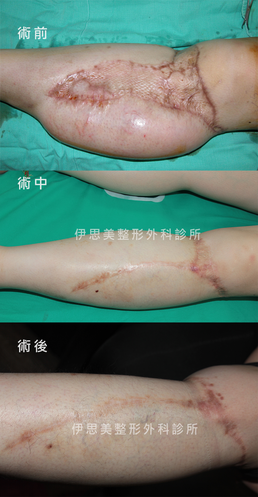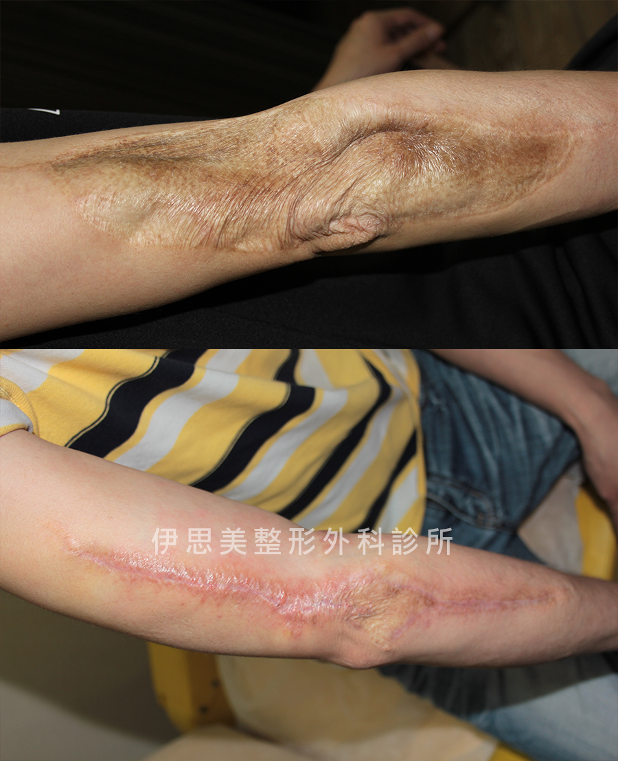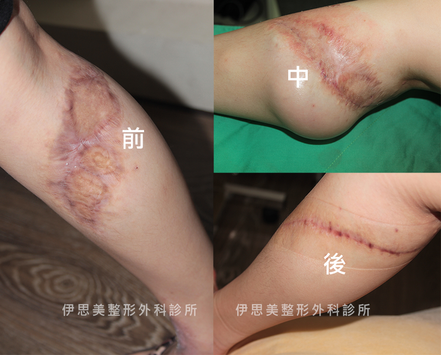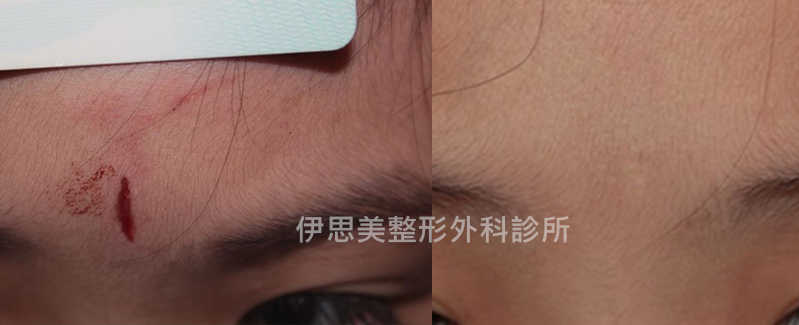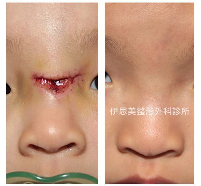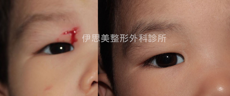 本診所真實案例,小朋友外傷縫合、燒傷疤痕、粉瘤手術等等,術前術後皆屬整形外科專業技術。